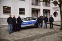 Informierten über das neue E-Auto bei den Mitarbeitern der Ordnungspolizei Biedenkopf: Bürgermeister Jochen Achenbach (3. v. l.), Marcus Hief als Vertreter der EKM (links), Axel Schlicker vom VW-Autohaus Velte (2. v. r.) und Ringo Gust von der Stadt (3. v. r.)