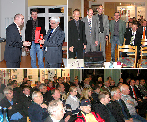 Bild oben links: Die beiden ersten Fotos sind von Willingshausen: Siegmund Laufer (li.), Geschäftsführer EAM, dankt Referent Herbod Gans, GIH (re.) im Beisein von Bürgermeister Heinrich Vesper